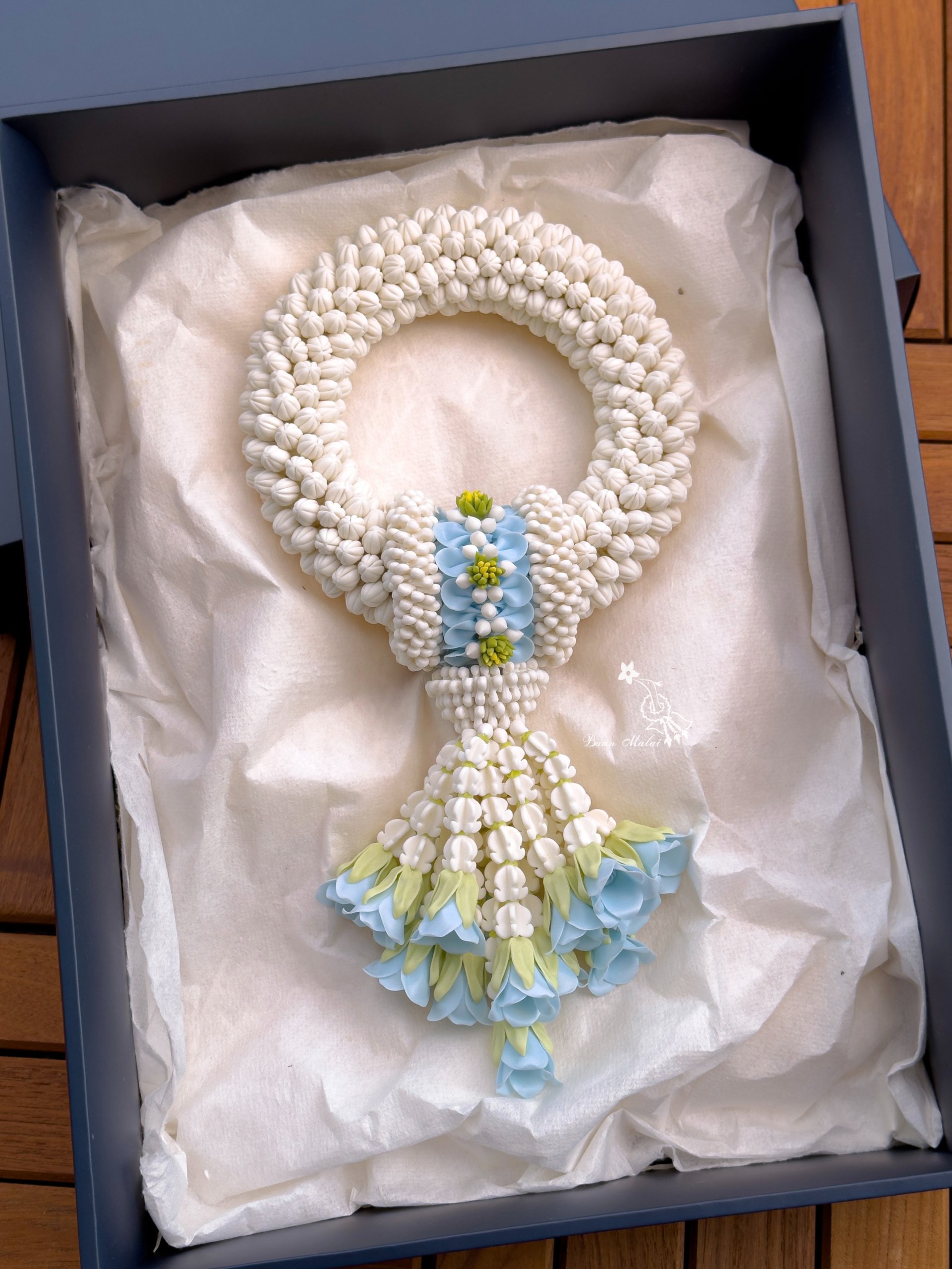 พวงมาลัยมะลิ 4 นิ้ว คาดมาลัยแบน อุบะดอกข่าบาน สั่งสีได้